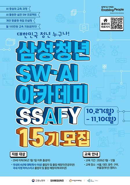 - 삼성청년SW·AI아카데미 SSAFY 15기 모집 안내